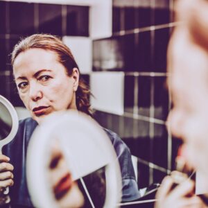 Potom pozrieš do zrkadla a vidíš na sebe to, čo si doposiaľ odmietala.  Vidíš tú istú tvár, len poznačenú časom vrások, pigmentových škvŕn. Vidíš pokleslé obrysy tváre, pokožku, ktorá už nie je taká prežiarená, je skôr zvädnutá, tenká, stráca pružnosť a pevnosť, chýba jej hydratácia…